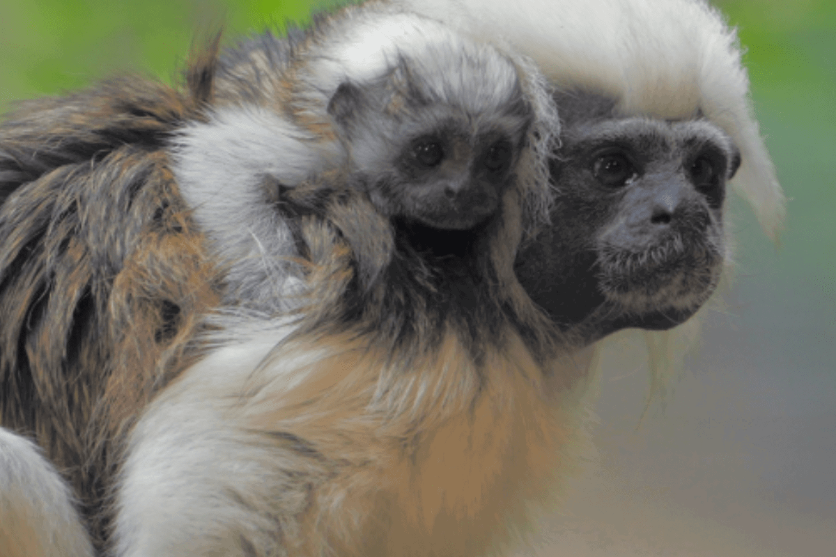 The birth of the infant which weighed around 40 grams when it was born – the weight of an average egg – has been announced to coincide with International Day of the Cotton Top Tamarin – 15 August – and is now just big enough to be seen in its enclosure clinging to mum or dad.