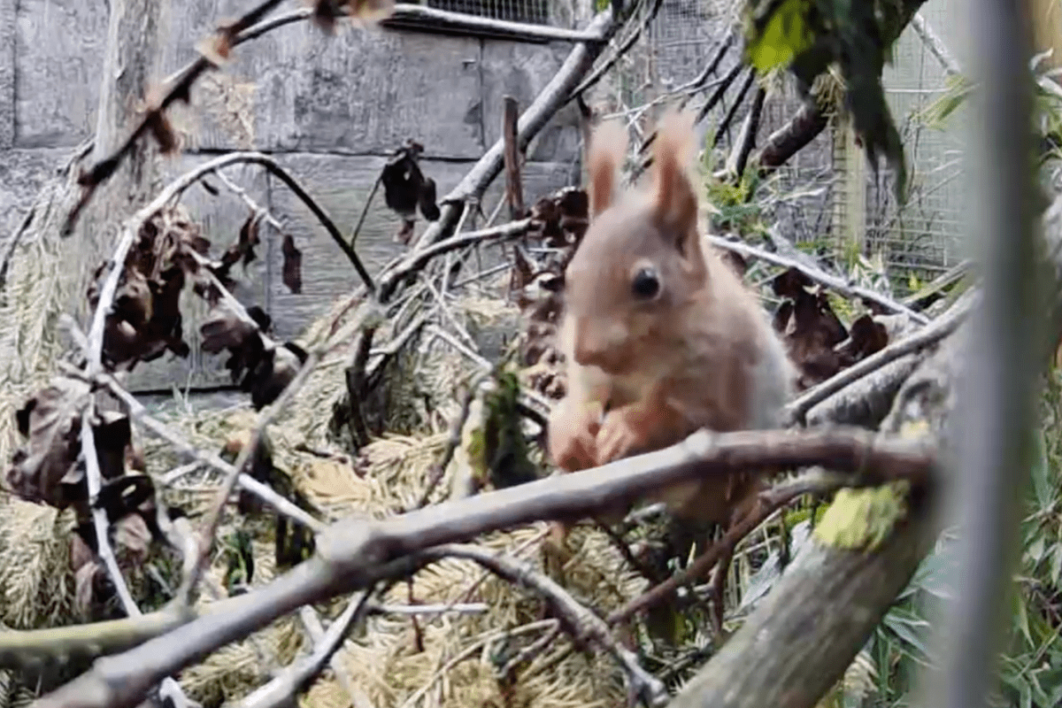 The first Red Squirrel kits to be born at Longleat for over three years have been captured on camera playing among the trees in their habitat.