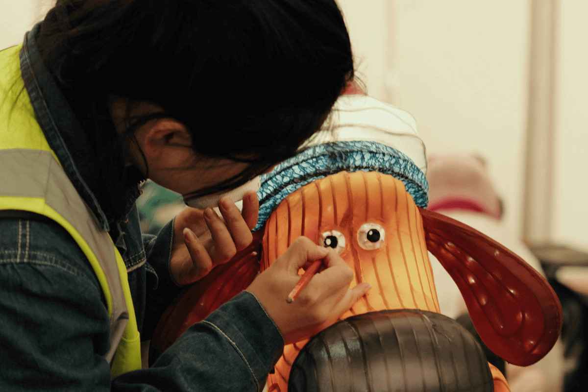 Photographs and video show the hand painting and artistry which goes into creating each lantern, from minute details to the complete creation of Wallace & Gromit’s rocket in a Grand Day Out. The rocket itself took four weeks to create, excluding design time, demonstrating the intricacy of the build process.