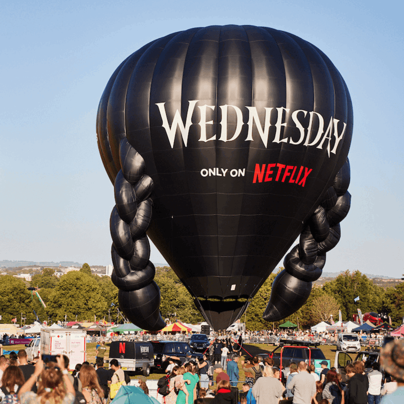 Complete with signature Wednesday plaits, the balloon wowed crowds while tethering at Bristol International Balloon Fiesta last month, to mark the return of Netflix’s Wednesday for Season Two. Now, with part two of the series live on the streaming platform, the balloon will be taking flight throughout the three-day event.