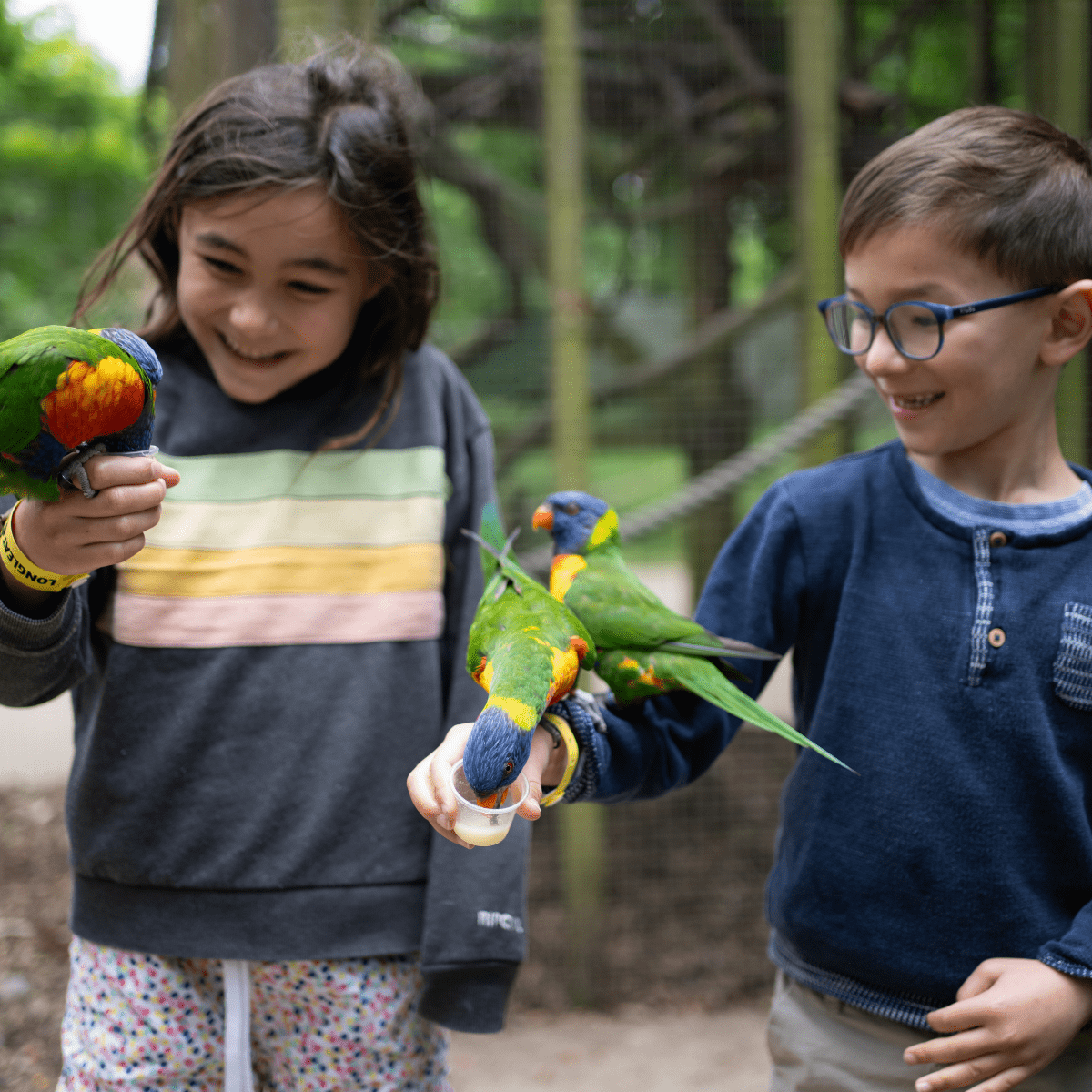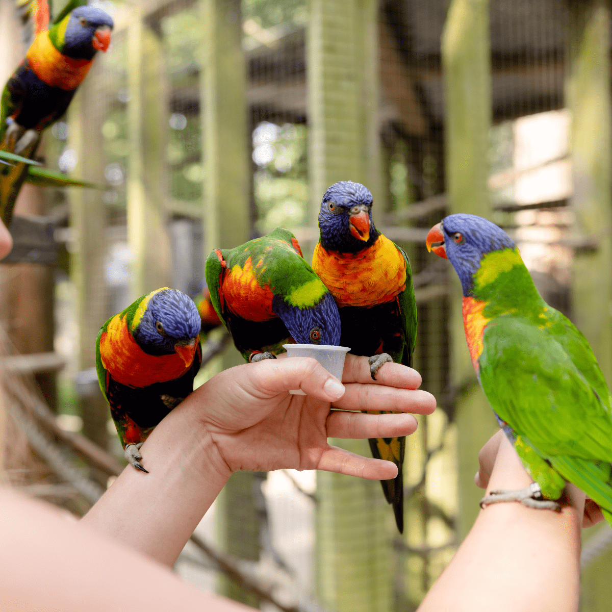 Step into our vibrant walk-through lorikeet aviary on the Walking Safari and you'll feel transported to a tropical paradise! These cheeky, colorful characters have been charming visitors since 2011 with their playful personalities.
