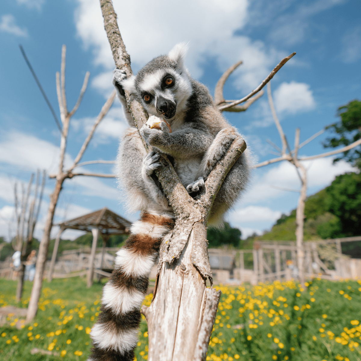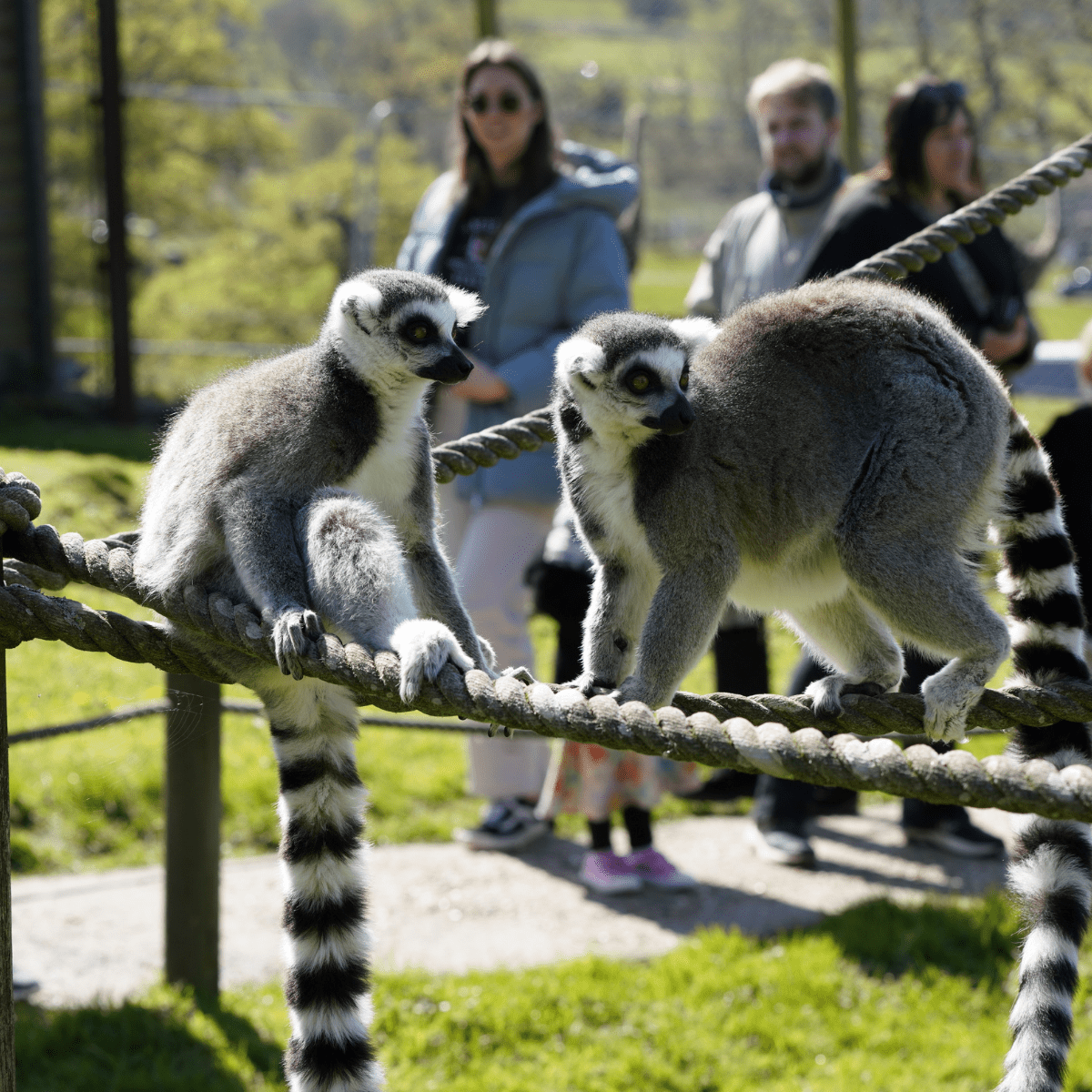 Longleat’s ring-tailed lemurs thrive in the African Village walk-through, where visitors can step right into their world. Twins Ronnie and Corbett were born here and live with their mother, Hasina, and siblings in a lively “conspiracy” of lemurs. With rope swings and wooden walkways, the group showcases its natural agility and playful foraging behaviour.